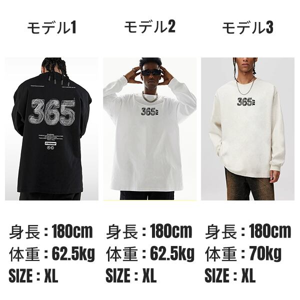 ・モデル1:身長 180cm 体重 62.5kg XLサイズ