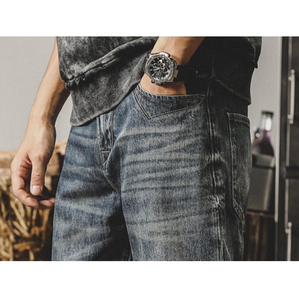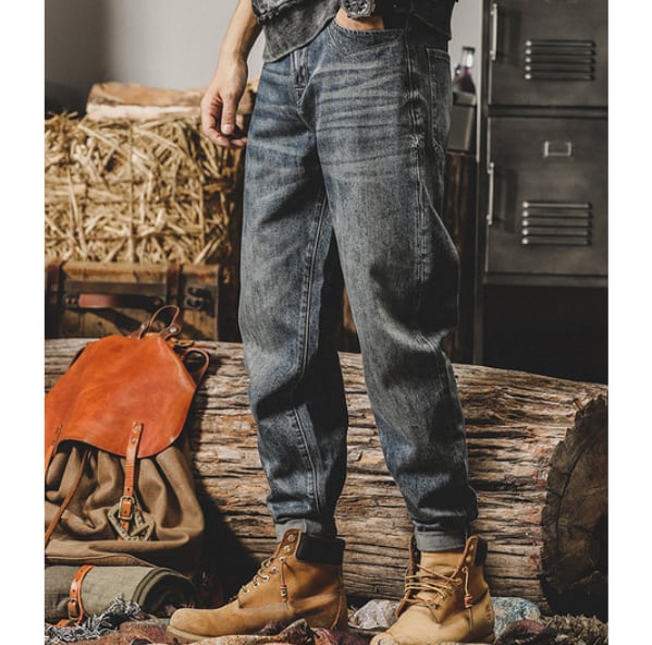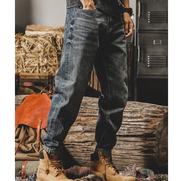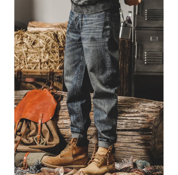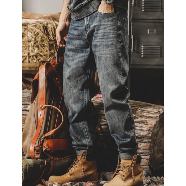 Back tag design denim pants P412